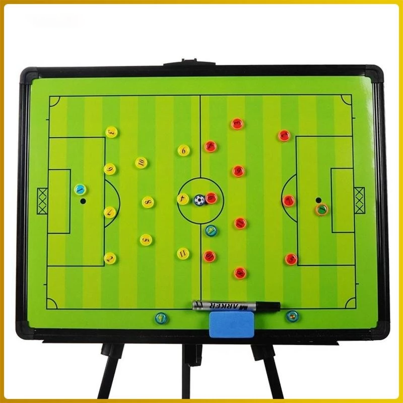 Bảng sử dụng bề mặt từ tính kèm quân cờ mô phỏng cầu thủ hai đội, giúp huấn luyện viên dễ dàng sắp xếp đội hình, thay đổi vị trí và minh họa các bài phối hợp chiến thuật nhanh chóng. Việc trình bày trực quan giúp cầu thủ dễ hiểu hơn, tiếp thu nhanh hơn và nâng cao hiệu quả buổi tập.