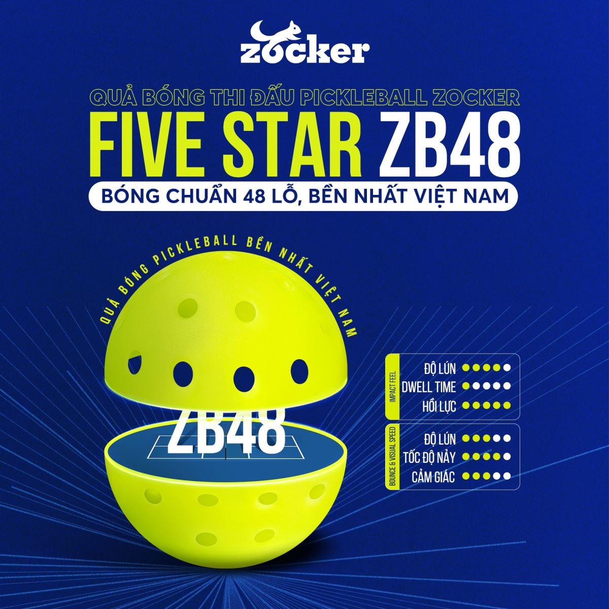 Tổng quan về sản phẩm Bóng Pickleball Zocker ZB48