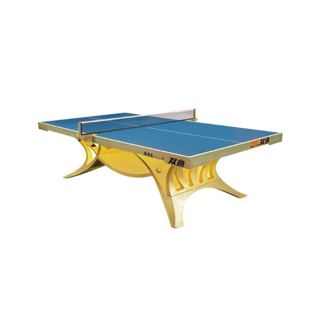 Bàn bóng bàn Double Fish Volant King hiện lên như một tác phẩm nghệ thuật đầy ấn tượng, mang đậm dấu ấn của thương hiệu Double Fish danh tiếng. Với thiết kế chân bàn cách điệu hình chữ V lớn, uốn lượn mềm mại và được sơn màu vàng ánh kim sang trọng, chiếc bàn này không chỉ là một dụng cụ thể thao mà còn là một điểm nhấn kiến trúc độc đáo cho mọi không gian.