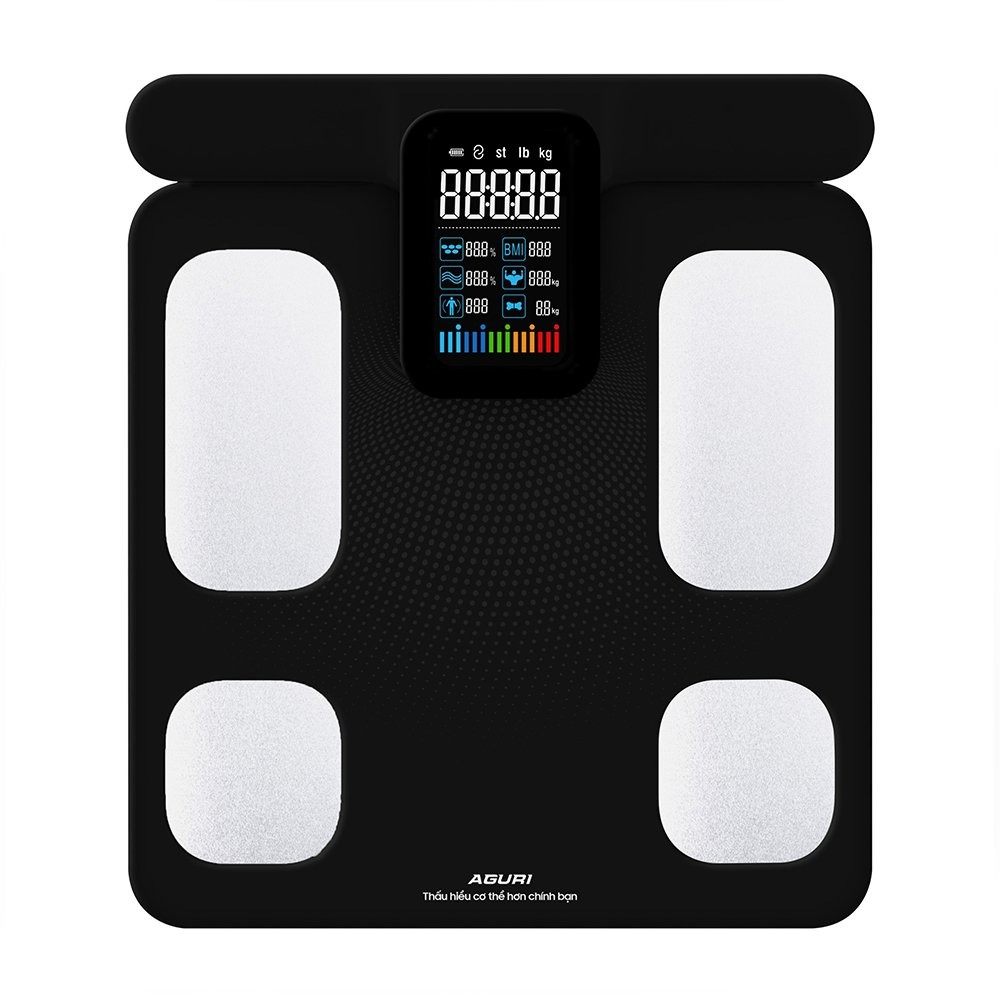 Cân sức khỏe điện tử thông minh AGURI AGSS-002A là một thiết bị theo dõi sức khỏe thông minh, giúp người dùng và gia đình theo dõi các chỉ số cơ thể một cách chi tiết, hỗ trợ lối sống lành mạnh.